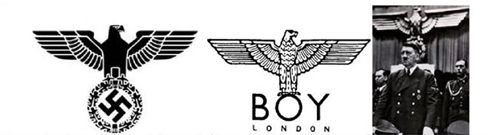 Le 3 avril 2013, la société Anglofranchise Limited a déposé, auprès de l'EUIPO - European Union Intellectual Property Office, la marque semi-figurative « BOY LONDON » nº 011708773 pour désigner notamment des bijoux, des sacs et des vêtements. Le 8 mars 2018, Yuliya Burgrey a sollicité la nullité de cette marque, au motif qu’elle serait contraire à l’ordre public, en invoquant le fait qu’elle reprenait l’imaginaire nazi. Sa démonstration s’est appuyée sur de nombreux sites internet comparant la marque à l’un des emblèmes du 3ème Reich, à l’image du document ci-dessous :